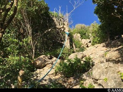 Départ sur la gauche, suivre le fléchage "Anse-Maurice". Cela commence fort, par une montée très dure avec corde pour aider. Très rapidement vous débouchez dans une savane où il faut aller tout droit (attention pas de balisage visible facilement). Vous allez longer des barbelés sur votre gauche. Arrive une descente très raide avec corde au milieu de Palmiers Lataniers. La remontée juste derrière n'est pas simple et attention au vide. Il faut ensuite enjamber une barrière de tôle. Vient très vite ensuite un passage délicat très proche du vide, mais avec un point de vue superbe. Vous débouchez ensuite dans une savane où il faut prendre à droite (Attention pas de balisage). Longer jusqu'à enjamber une autre barrière en tôle. Plus loin il faut être bien attentif car il faut bien suivre le balisage qui vous emmène à GAUCHE (si vous allez tout droit, c'est DANGER). Suit une descente compliquée où il n'y a plus de corde. Donc prudence. Vous êtes dans la ravine à l'Anse à L'Ecu. Traverser le plateau de l'Anse à L'Ecu et rester toujours attentif pour prendre à gauche (bien suivre le balisage). Montez sur le haut de la falaise doucement et arrivez face à une barrière de tôles qu'il faudra longer à droite jusqu'à une porte en barbelés. Passez la porte, en n'oubliant pas de refermer derrière vous. Dans la savane prendre à droite et longer la clôture jusqu'à une nouvelle porte barbelé. Vous poursuivez dans le sous bois jusqu'à déboucher dans une savane. Le chemin est droit devant en longeant la végétation sur votre droite. Après un passage dans le sous bois, vous allez déboucher dans un champs qu'il faut traverser tout droit (juste en face). Nous arrivons à la dernière descente sportive, Attention les pierres roulent sous les pieds. Vous arrivez sur le littoral qu'il faut suivre jusqu'à la plage d'Anse Maurice en passant devant le cimetière des esclaves de la plage d'Anse Marguerite.