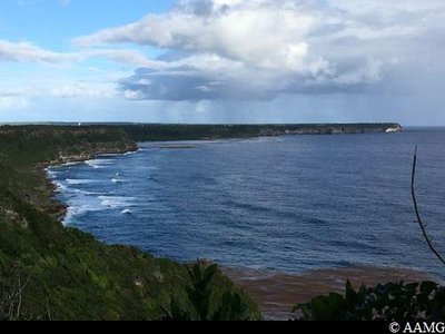 C'est en haut de cette falaise que le panorama sur la côte et la ville du Moule est grandiose. En grimpant on peut s'apercevoir l'épaisse couche de sédiments que la mer a créée pour former la Grande-Terre.